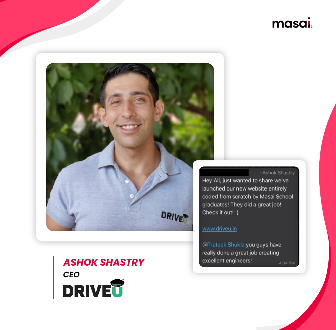 The same was further validated when Masai’s Co-founder & CEO Prateek Shukla received the following text from Ashok Shastry, Co-founder & CEO, DriveU -