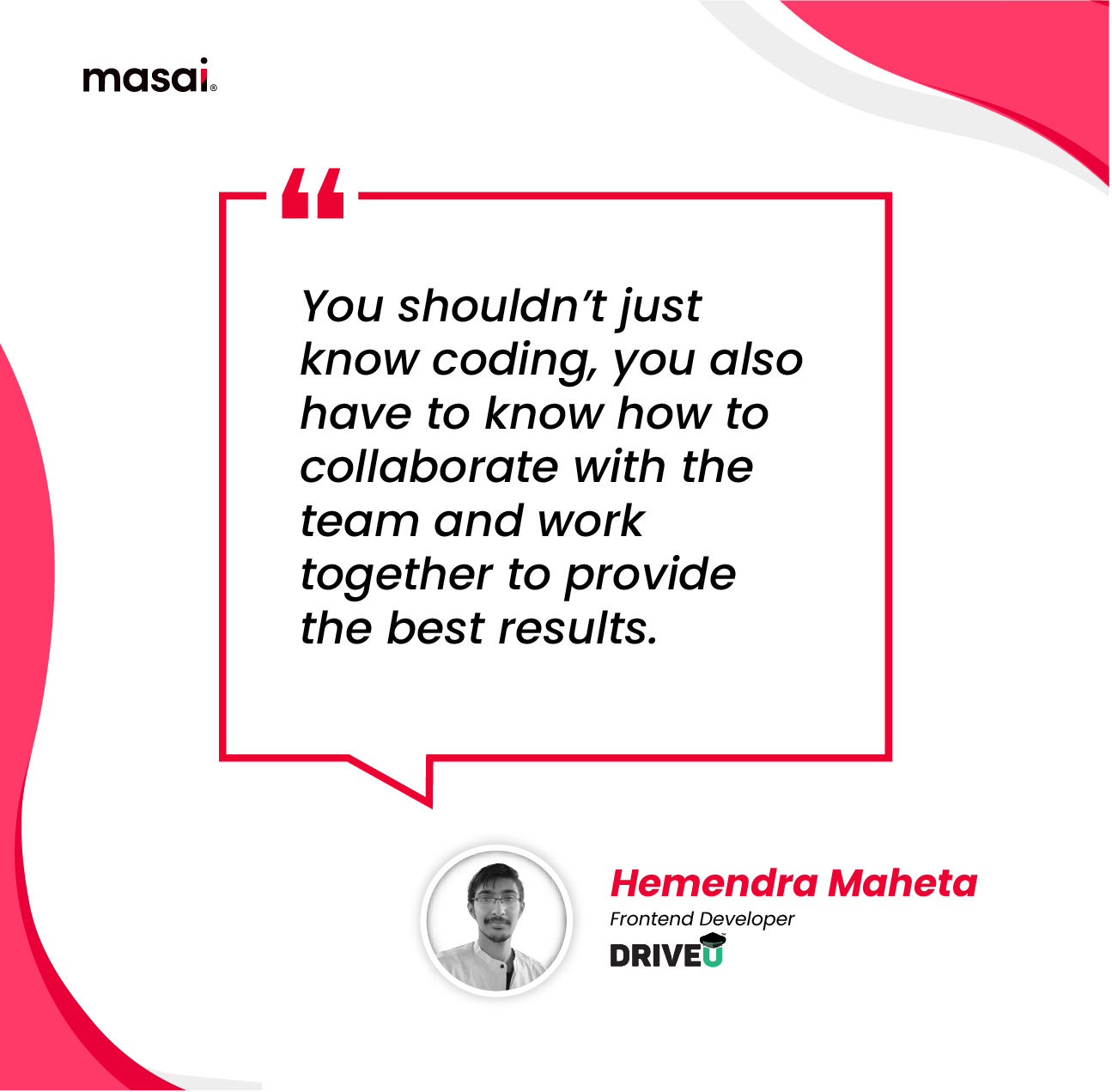 Hemendra credits his technological know-how and analytical mindset for making him efficient at work. He is happy that Masai provided him with in-depth education in a subject that precisely fits the industry's technological standards.