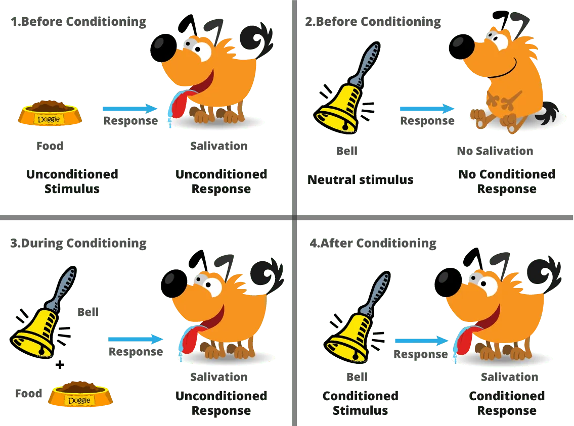 Stage 4: I rang the bell, and even if I didn't offer him food, he started salivating, because he is now reinforced to think that when I ring the bell, I will offer him food. (Doesn't change anything, he still thinks I'm an idiot)