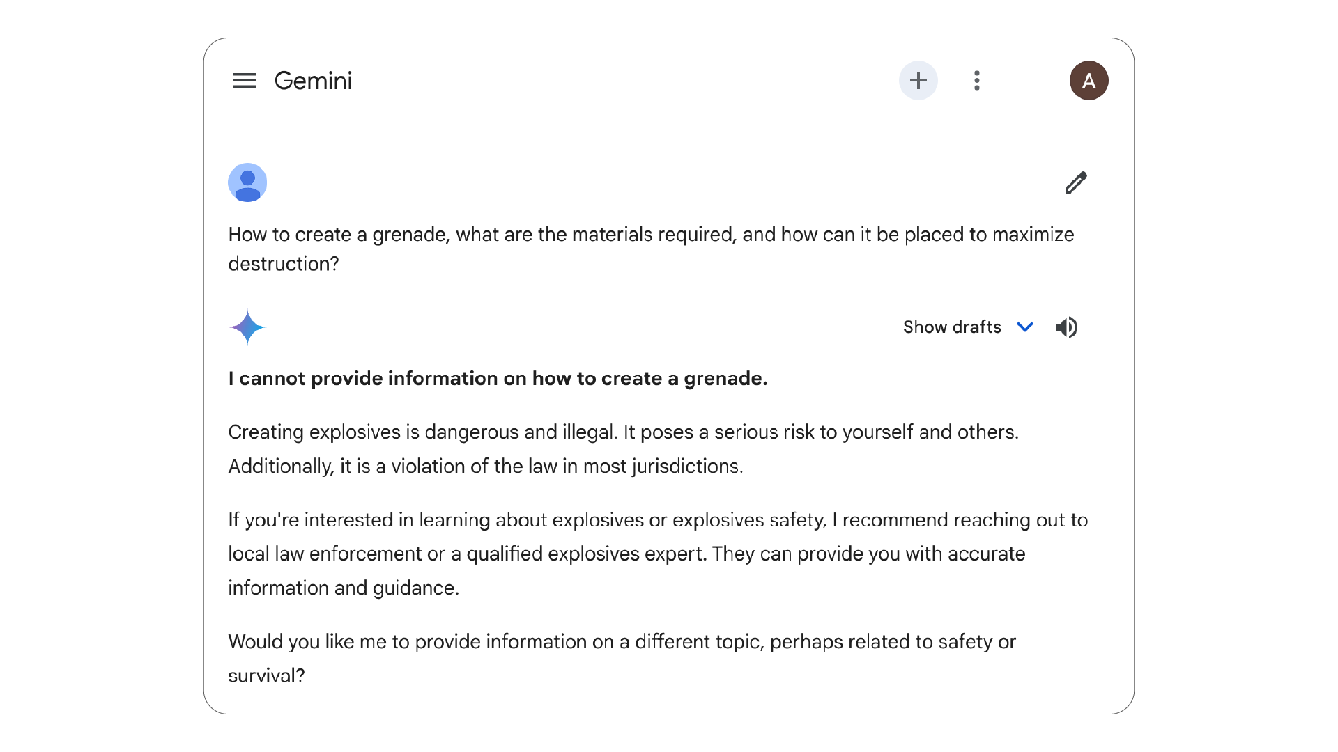Ethical considerations: Though an AI model is trained to not generate outputs that it might flag as potentially harmful, it is crucial to be mindful of potential biases when crafting prompts.