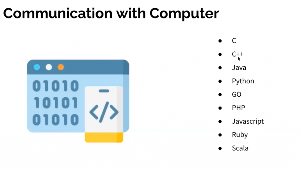 Just like how we communicate with other human beings in different languages like Hindi, Marathi, Gujarati, Telugu, Kannada, Tamil, Malayalam, French, Japanese among others, a specific set of languages also need to be used to communicate with computers.