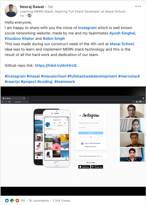 In a span of just 30 weeks, the students of Masai School undergo 1000 hours+ of hands-on coding, several portfolio projects, and so much more.