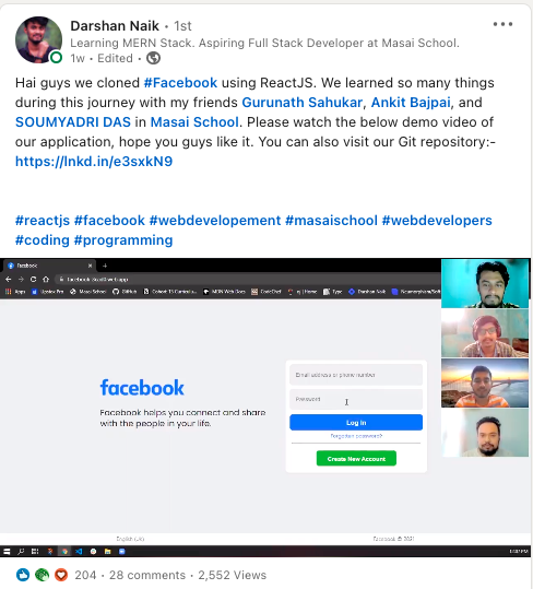 Special shoutout to Shubham from batch Samurai-II, who single-handedly built a clone of Nykaa, which includes the complete front-end of Nykaa, along with the functionalities to place an order, like a product, and many other features which make Shubham’s project stand out.